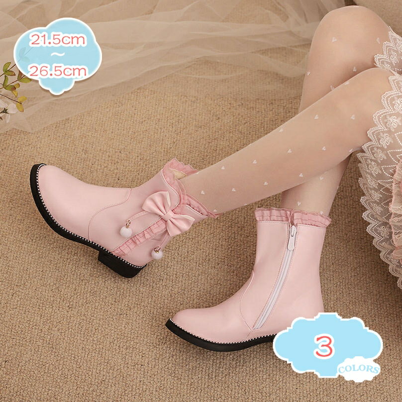 777円OFFクーポン コスプレ靴 ショートブーツ 厚底シューズ レディース 大きいサイズ リボン/・・・