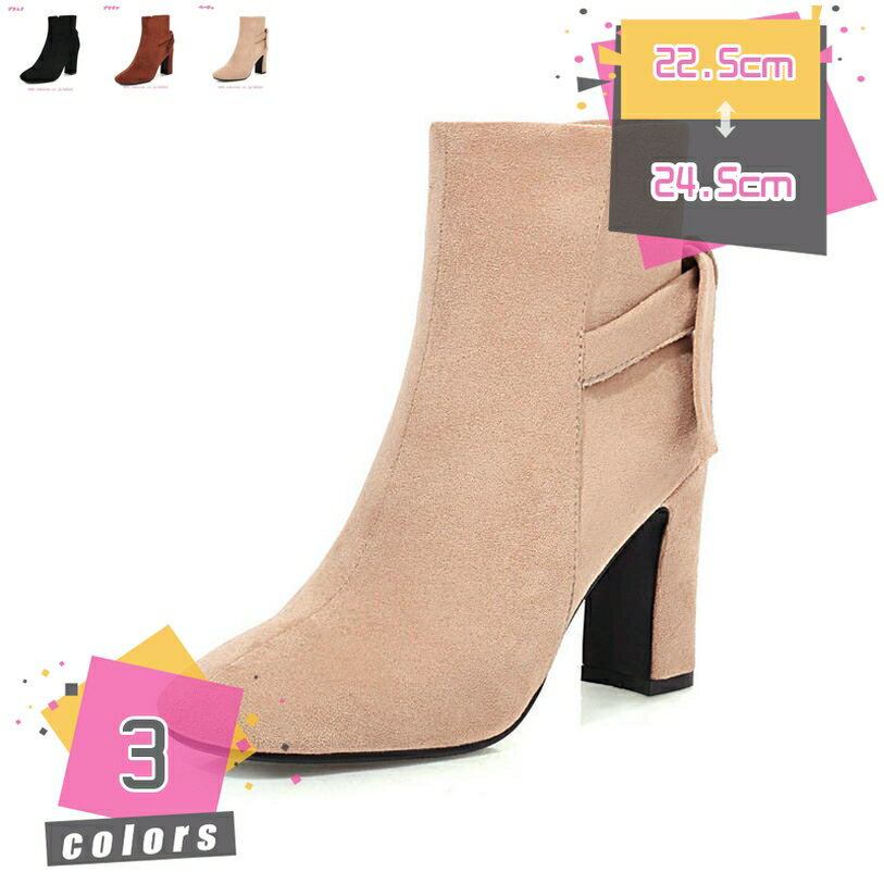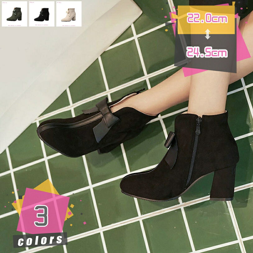 1000円OFFクーポン ショートブーツ レディース ブーツ ショート丈 リボン 太めヒール 厚底 ・・・