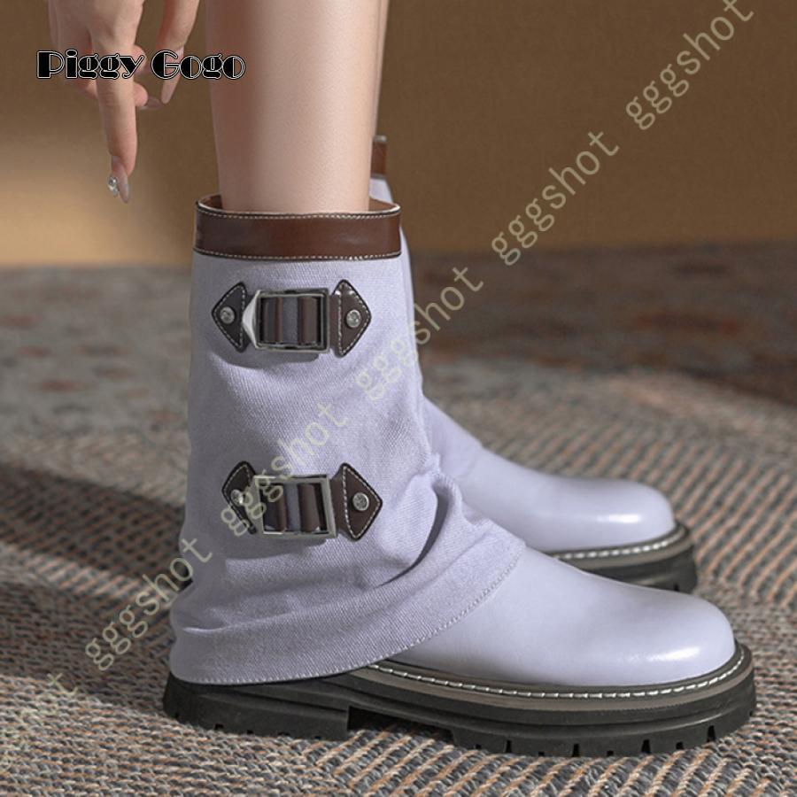 レディース ショートブーツ ベルト飾り 厚底ブーツ サイドファスナー 厚底 ブーツ ヒール 折り返し・・・