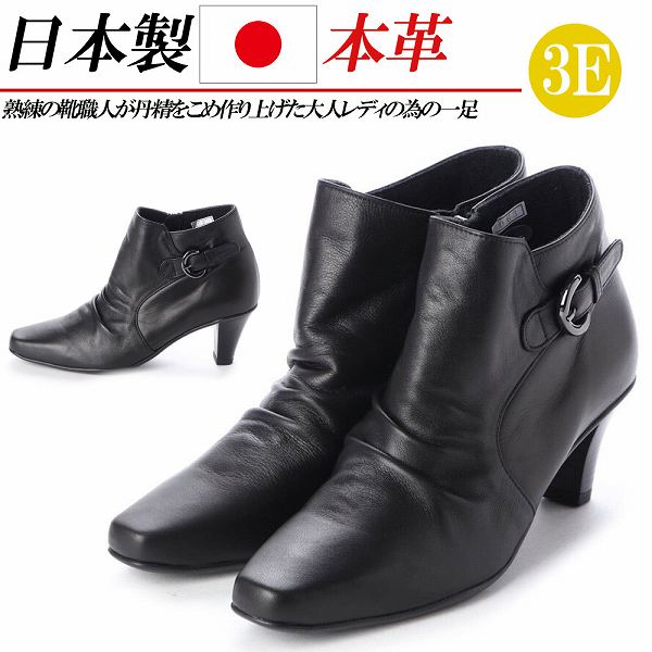 日本製 本革 革 ショートブーツ ブーティ 太ヒール レディース レザー ブーツ ヒール スクエアト・・・
