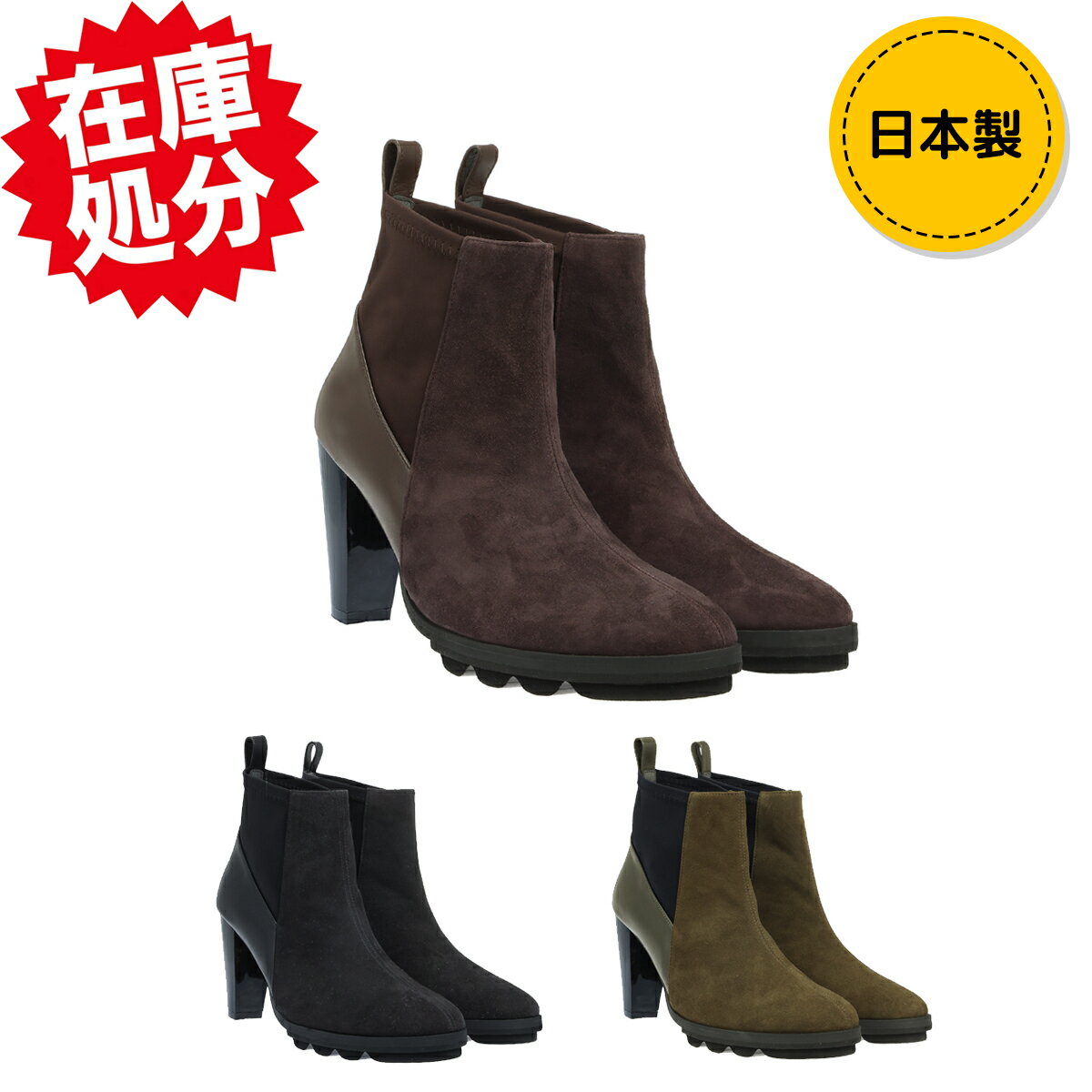 オセアニカ <日本製> レザー&サイドストレッチ ヒールブーツ