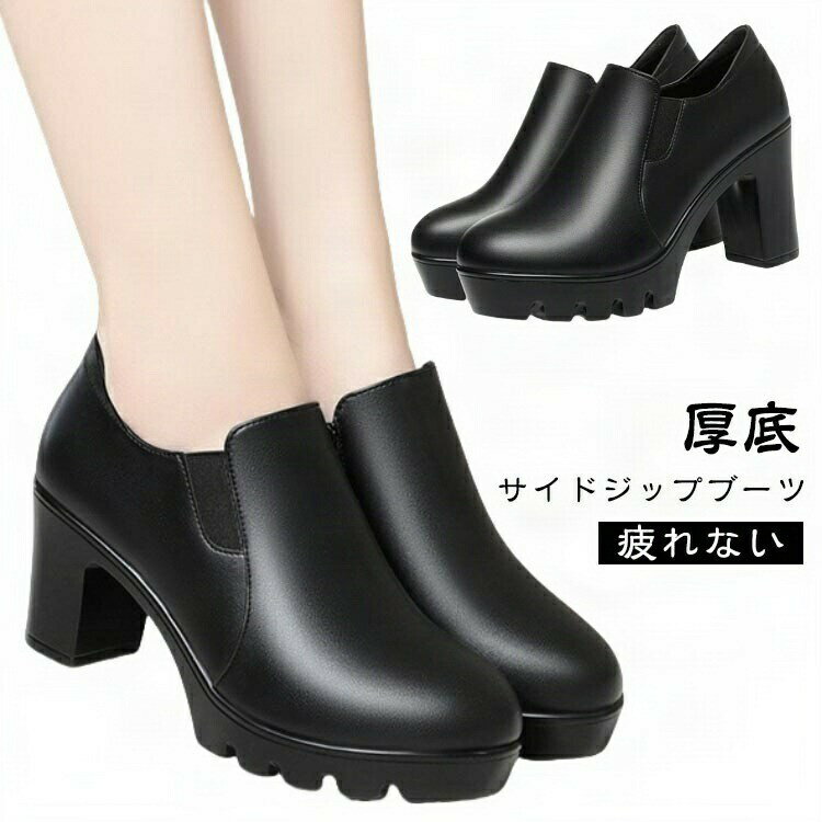 ブーツ レディース ハイヒール 厚底 サイドジップ チャンキー 太ヒール ブーティー ショート 疲れ・・・