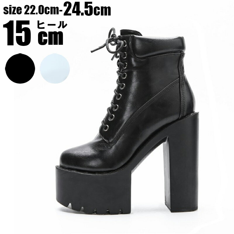 15CM 厚底 ショートブーツ 太ヒール レディース レースアップブーツ 編み上げブーツ サイドジッ・・・