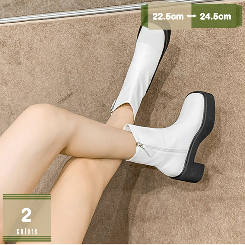 500円OFFクーポン レディース 厚底 太ヒール ブーツ ショートブーツ 袴 チャンキー ヒール ・・・
