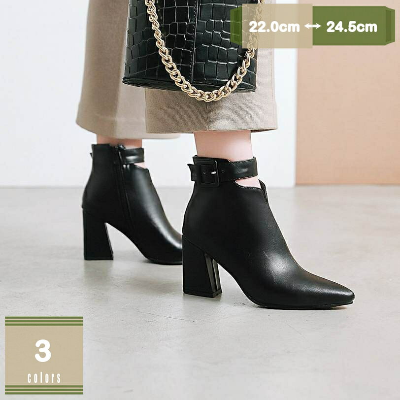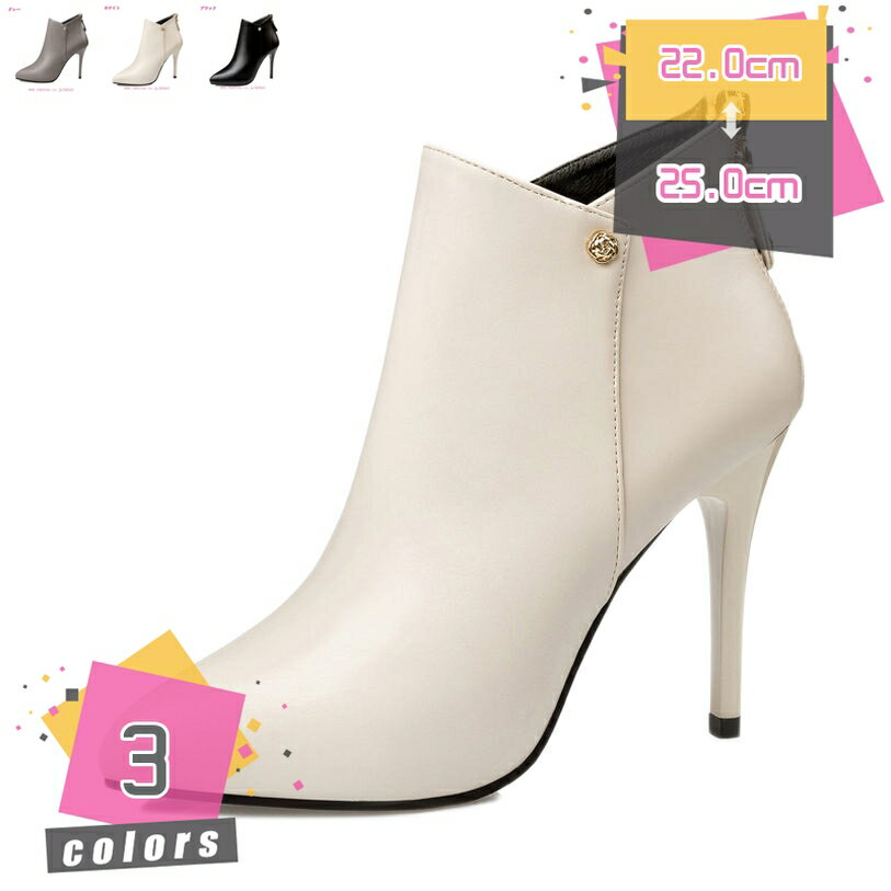 レディース ブーツ ブーティ ピンヒール 歩きやすい ショート ポインテッドトゥ 滑り止め 黒 白 ・・・