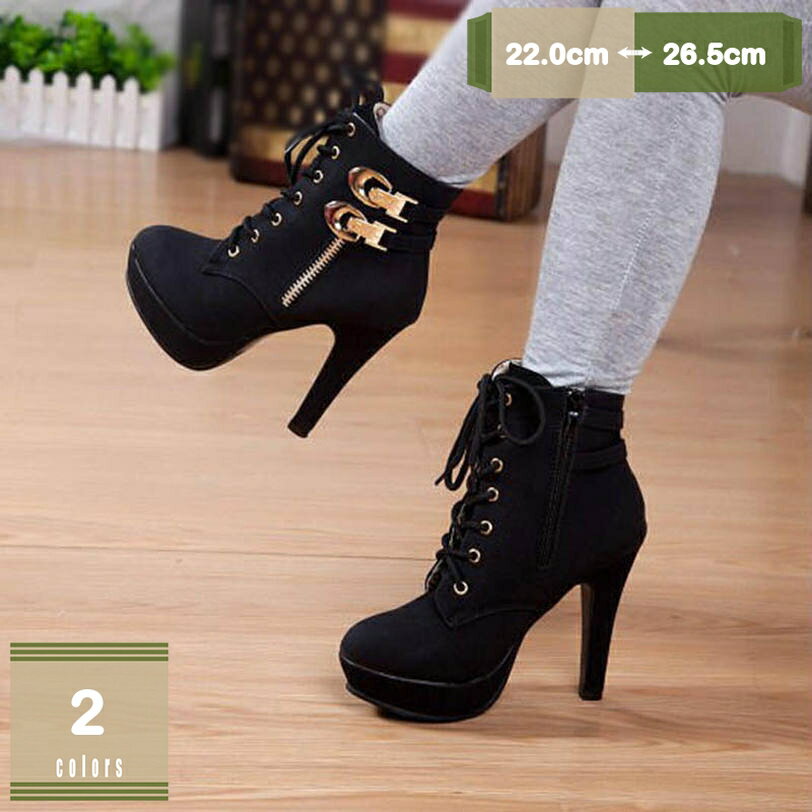 2000円OFFクーポン ラウンドトゥブーツ レディース ミドル ショートブーツ ハイヒール チャン・・・
