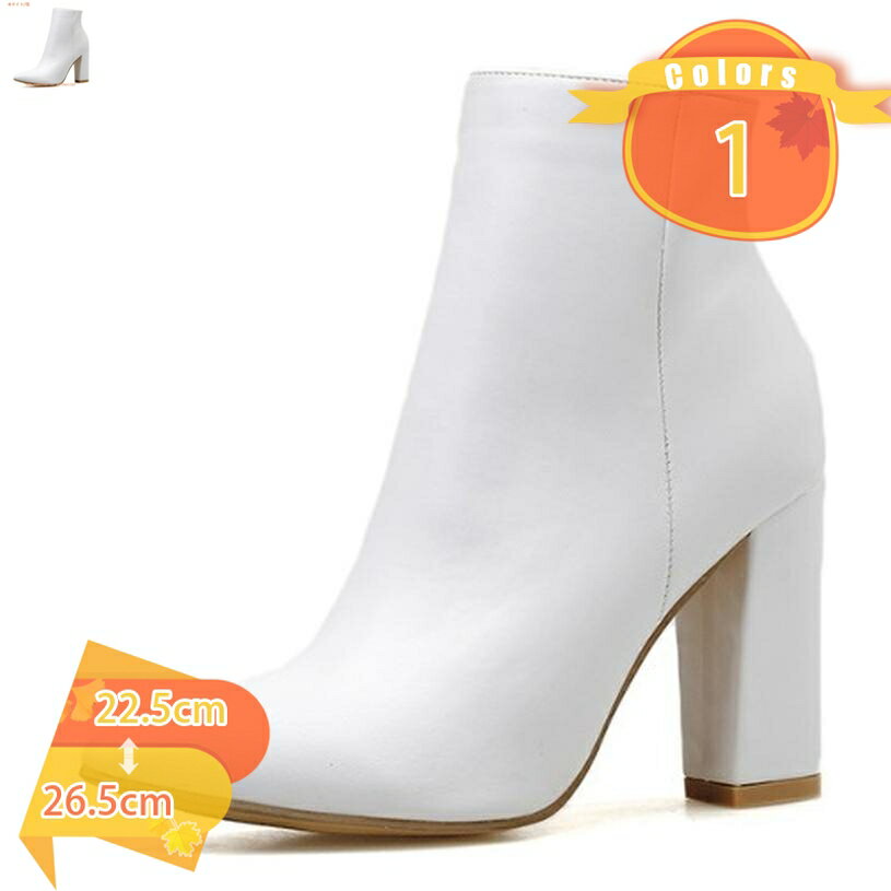 2000円OFFクーポン ラウンドトゥブーツ レディース ミドル ショートブーツ ハイヒール チャン・・・