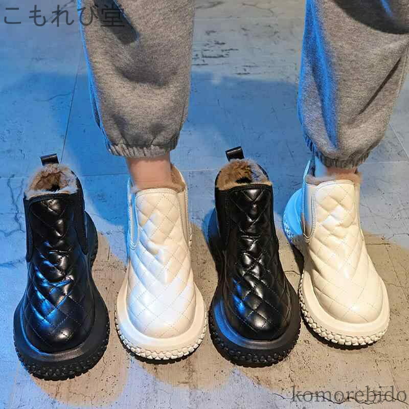 スリッポンブーツ カジュアル かわいい ファー 裏起毛 サイドゴア 黒 かっこいい ブーツ 白 ブー・・・