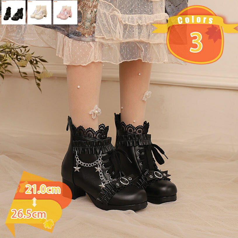 1000円OFFクーポン 厚底 太ヒール レースアップ ショートブーツ レディース チャンキーヒール・・・