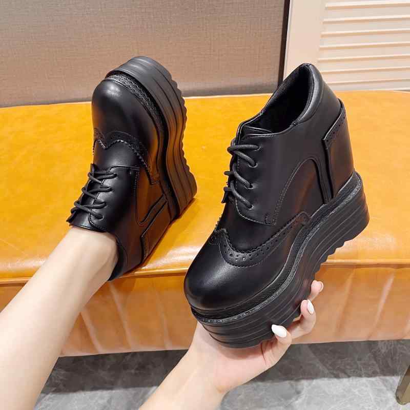 ブーティ ウェッジソール 10cm 黒 白 ローファー パンプス かっこいい 韓国系 本革 高級感 ・・・