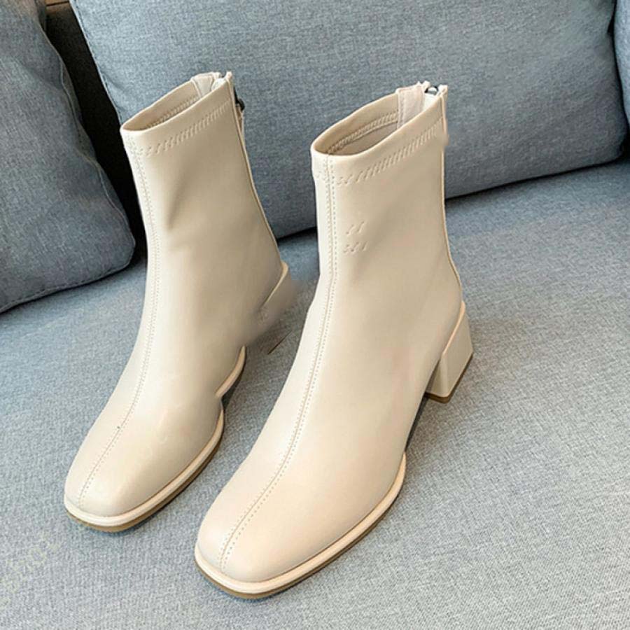 777円OFFクーポン チャンキーヒール バックジップ ショートブーツ レディース スクエアトゥ 太・・・