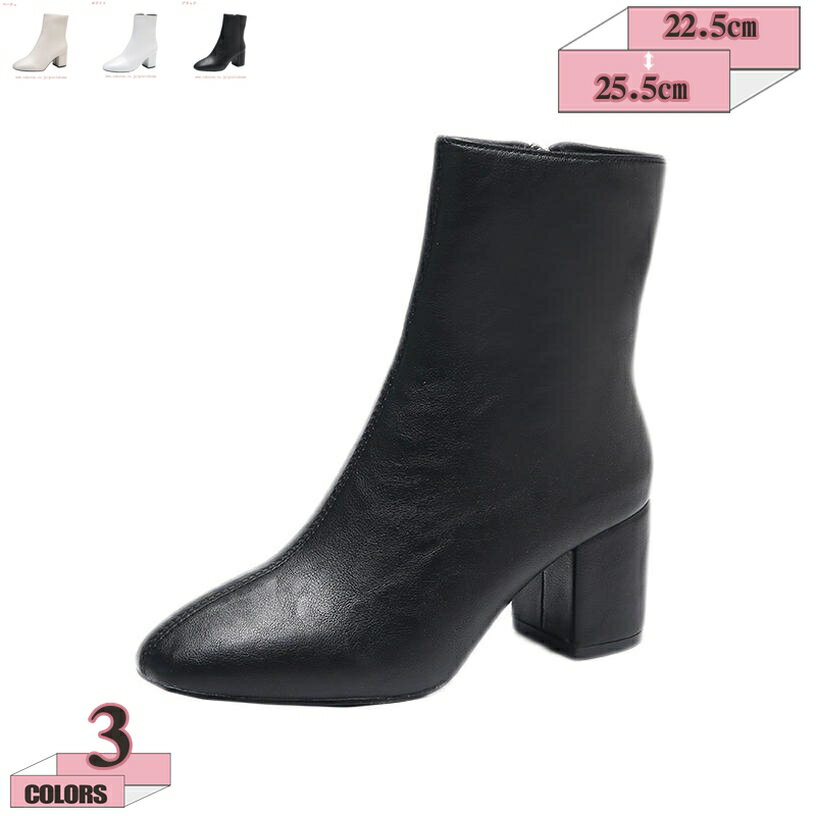 ブーツ レディース ショートブーツ 白 茶 黒 ショート 太ヒール チャンキーヒール 大きいサイズ ・・・
