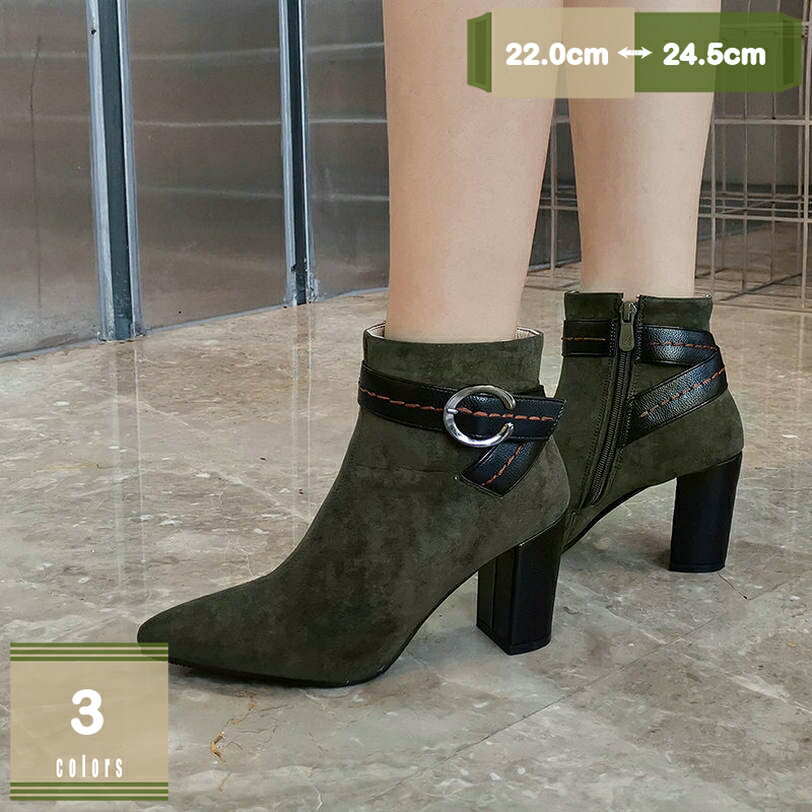 500円OFFクーポン スクエアトゥショートブーツ レディースブーツ カジュアルシューズ サイドジッ・・・