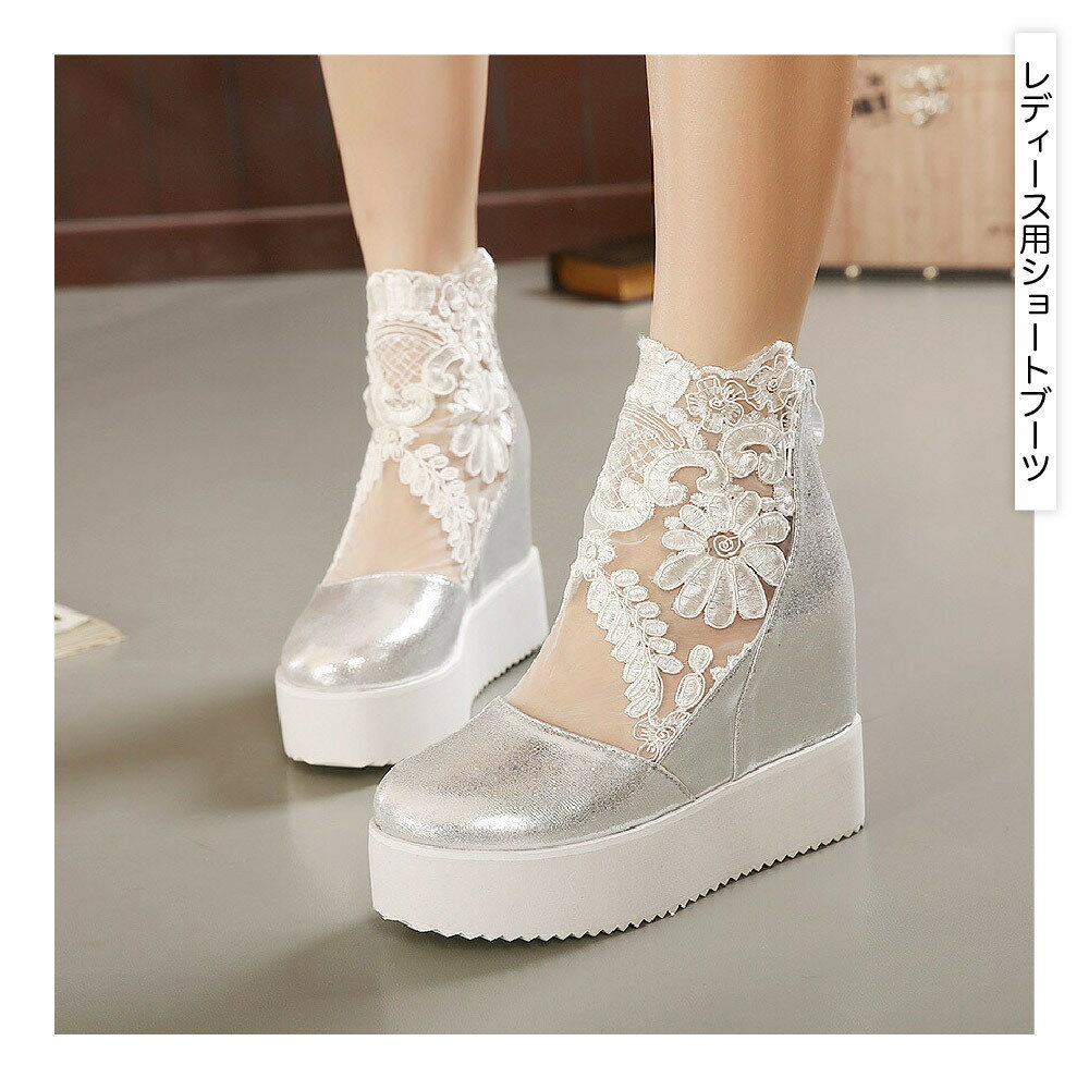 送料無料 ショートブーツ レディース 女性 靴 厚底 フラット レース フラワー リーフ ブーティ ・・・