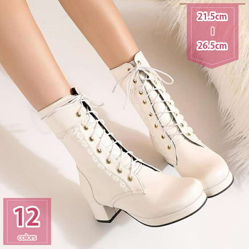 ショートブーツ ヒール レディース 歩きやすい 黒 白 22-24.5cm ヒールブーツ ブーツ ピ・・・