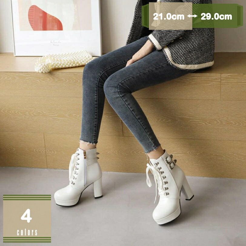 777円OFFクーポン 厚底 ブーツ レディース ブーティー ショートブーツ バックル 10cmヒー・・・