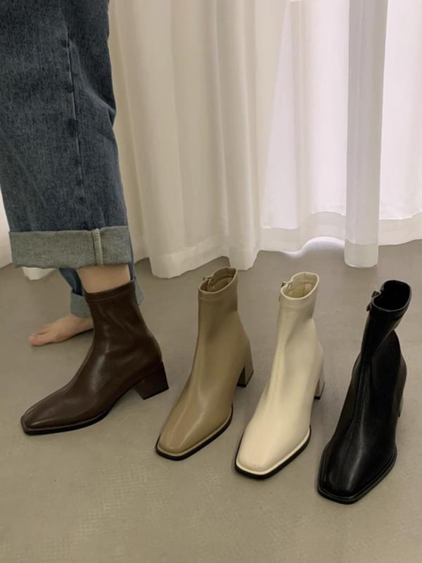 ソックスブーツ レディース ショートブーツ 太めヒール ストレッチブーツ ショート スクエアトゥ ブ・・・