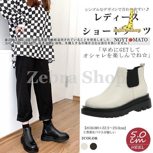 ショートブーツ レディース サイドゴアブーツ ぺたんこ 厚底 ラウンドトゥ PU サイドゴア 履きや・・・