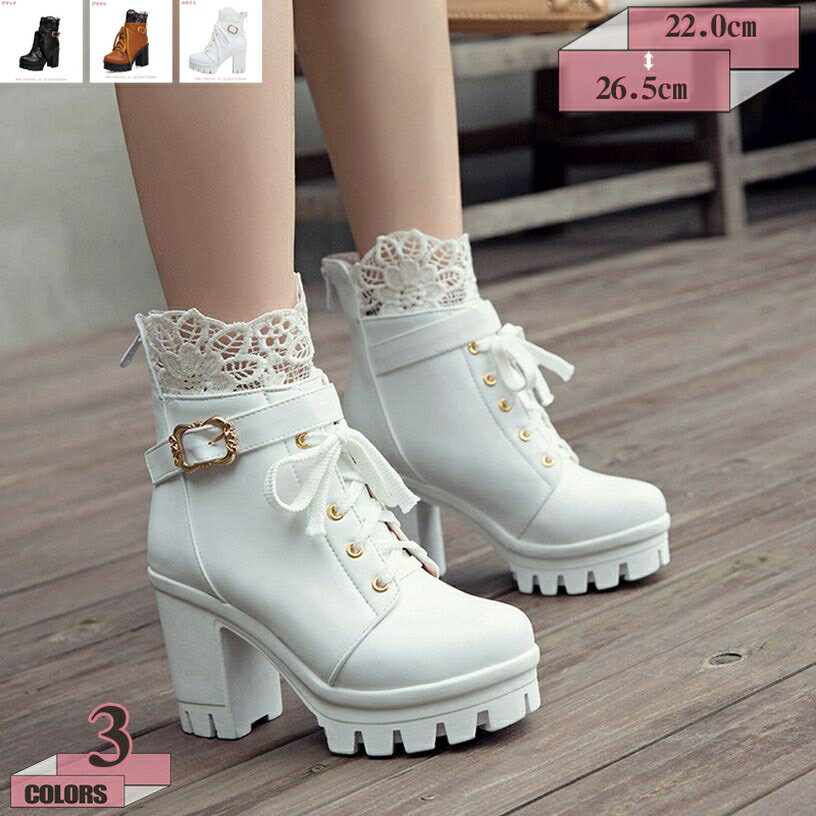 777円OFFクーポン レディース 可愛い ショートブーツ ハイヒール 編み上げブーツ お嬢様風 美・・・