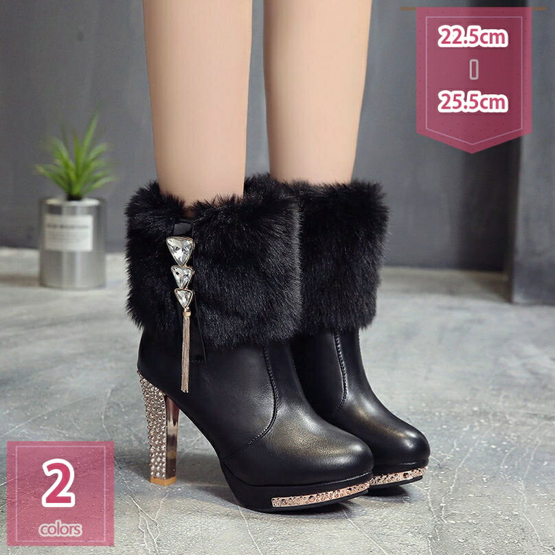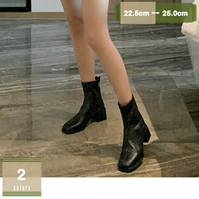500円OFFクーポン ブーツ レディース ショートブーツ 黒 白 ショート 太ヒール チャンキーヒ・・・