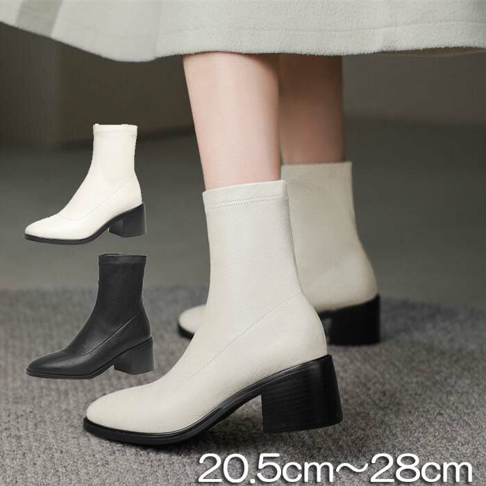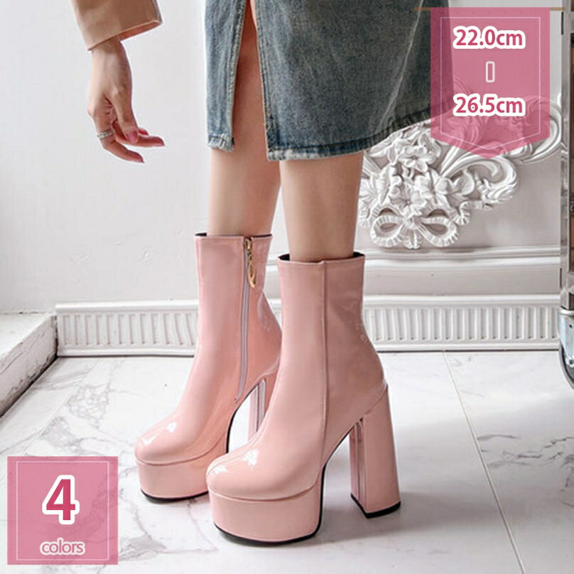 ブーツ チャンキーヒール ショートブーツ ブーティ 黒 白 20.5cm 21cm 21.5cm 2・・・