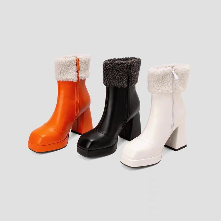 ショートブーツ レディース 女性用 ブーティ 秋冬 欧米スタイル スクエアトゥ 太ヒール チャンキー・・・
