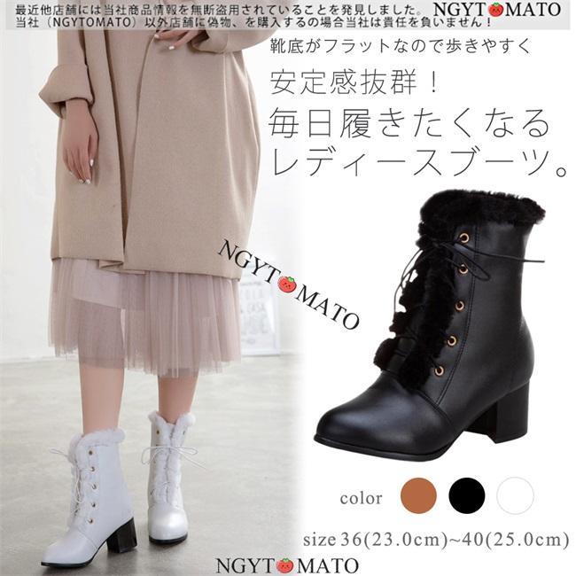 ショートブーツ レディース ショート丈 ポインテッドトゥ 太めヒール 編み上げブーツ レースアップ ・・・