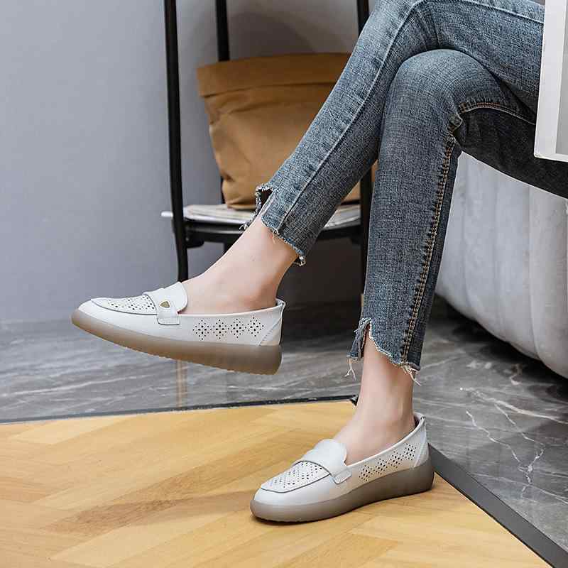 靴/ブーティ レディース ナースシューズ 白 ぺたんこ靴 坡ヒール 柔らかい底 滑り止め ラウンドト・・・