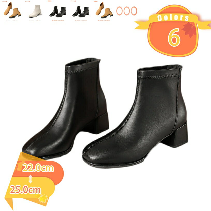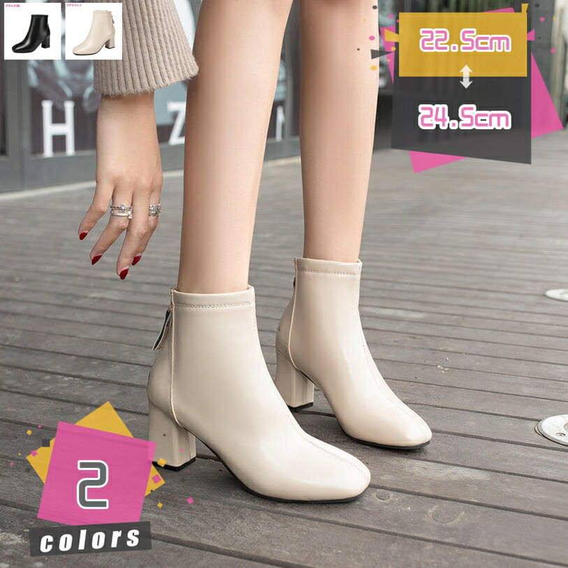 1000円OFFクーポン レディース ショートブーティー 前厚6cm 太ヒール サイドジップ シンプ・・・