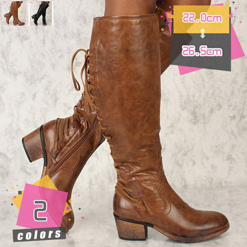 1000円OFFクーポン ブーツ レディース ロング 黒 白 秋冬 シンプル 美脚 レースアップブー・・・