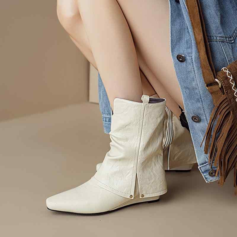 ブーツ レディース 女性用 レトロ ヴィンテージ 牛革 レザー ショートブーツ ブーティ ウェッジソ・・・