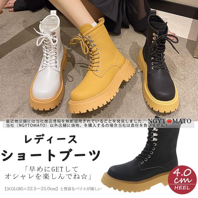レースアップブーツ 厚底 レディース ショートブーツ ラウンドトゥ 編み上げブーツ ブーティ 白ブー・・・