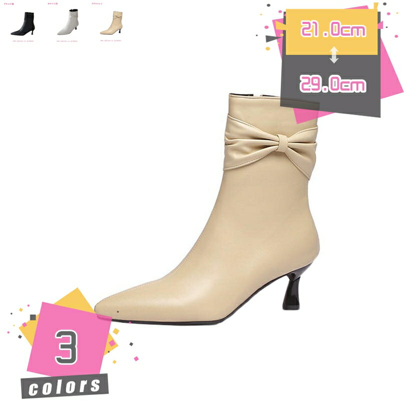 1000円OFFクーポン ブーツ ショートブーツ ブーティ リボン 裏起毛 ピンヒール ハイヒール ・・・