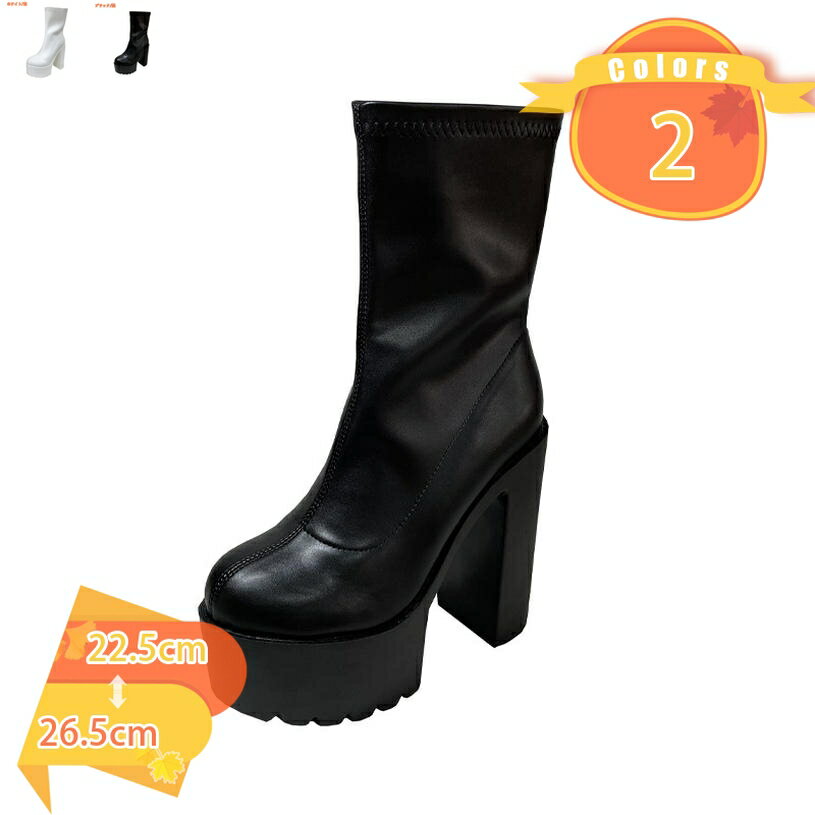 1000円OFFクーポン おしゃれ ブーツ ハイヒール レディース 厚底 太ヒール 前厚 美脚 折り・・・