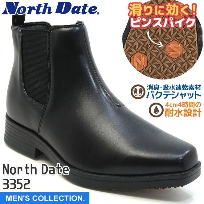 【ノースデイト】 メンズ スノーブーツ ブラック 防滑 防寒 4E 幅広 4cm耐水 滑りにくい ピ・・・