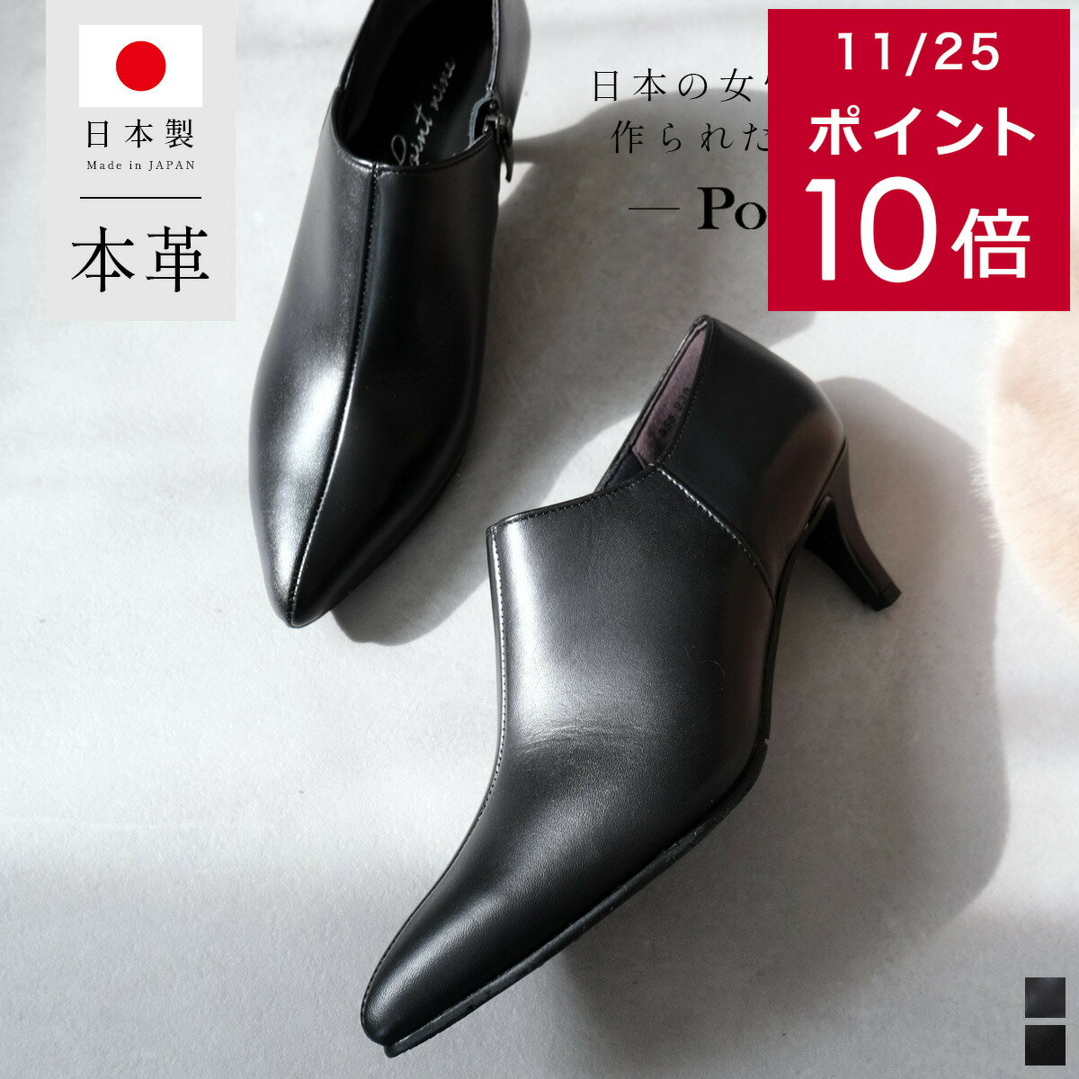 ★ブラックフライデーMAX1000円OFF! 【日本製】 HS ブーティー レザー パンプス ブラッ・・・