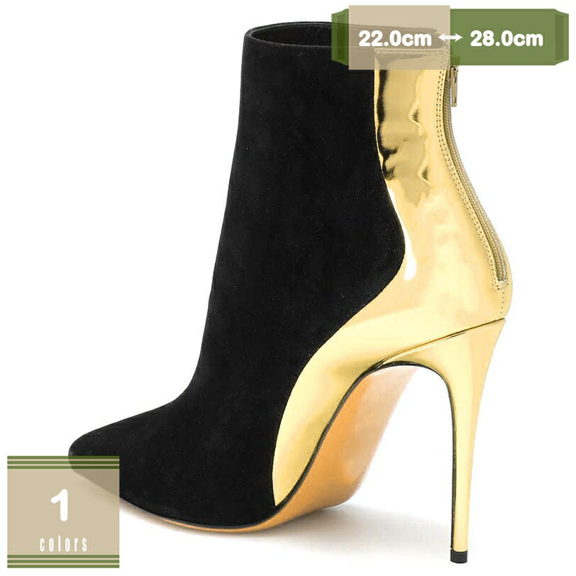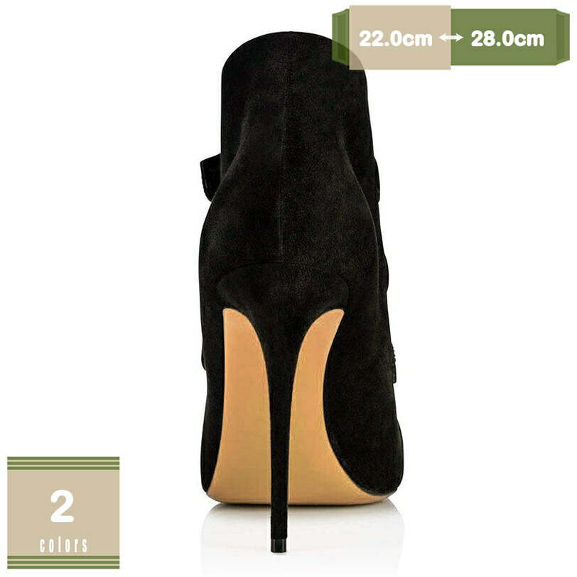 ピンヒール ショートブーツ レディース 美脚 サイドジップ ブーティ 大きいサイズ 歩きやすい 11・・・