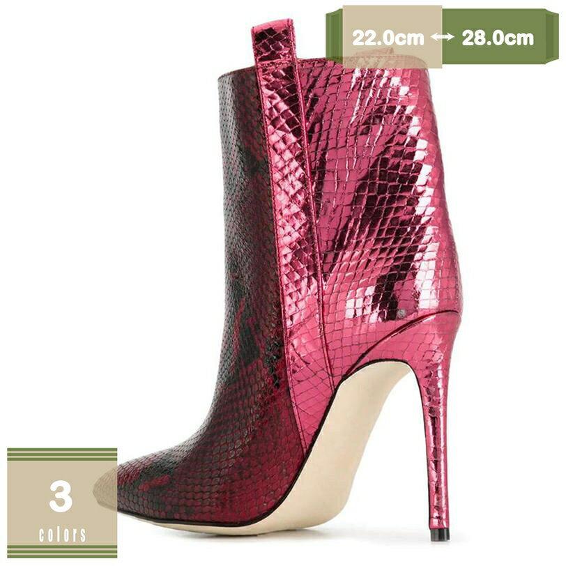 ひょう柄 ブーティ ピンヒール スリッポン ブーティー ショートブーツ レディース 大きいサイズ サ・・・