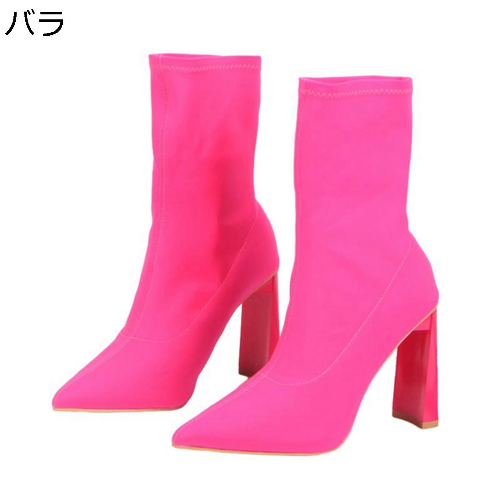 ソックスブーツ ショートブーツ レディース ブーティ 11cmアップ ハイヒール ポインテッドトゥ ・・・