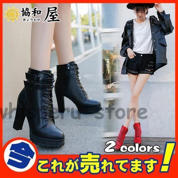 ショートブーツ サイドゴア 厚底 太ヒール シューズ レディース ブーティ ハイカット エンジニア ・・・