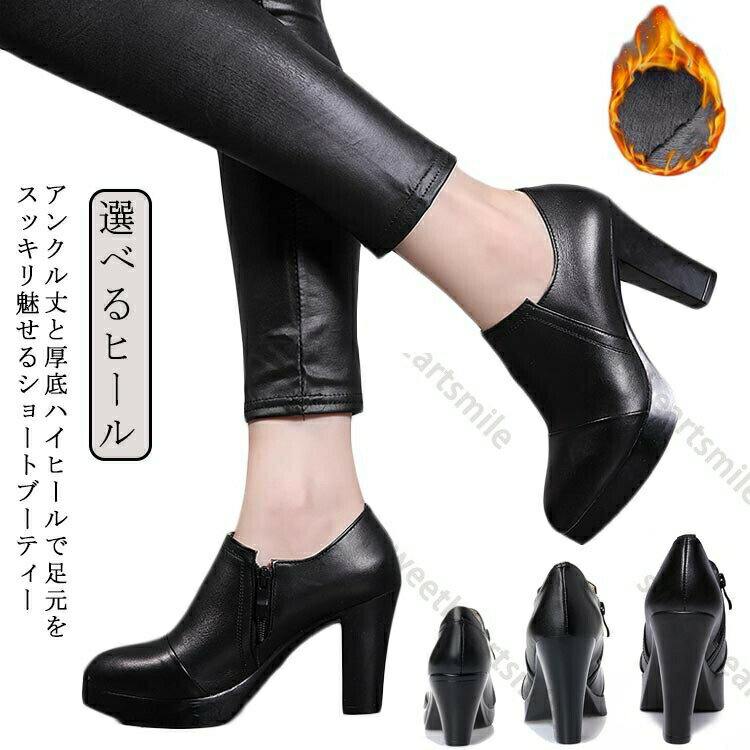 レディース ブーティ ブーティ ブーツ 6cmヒール ショートブーツ 疲れにくい 選べるヒール サイ・・・
