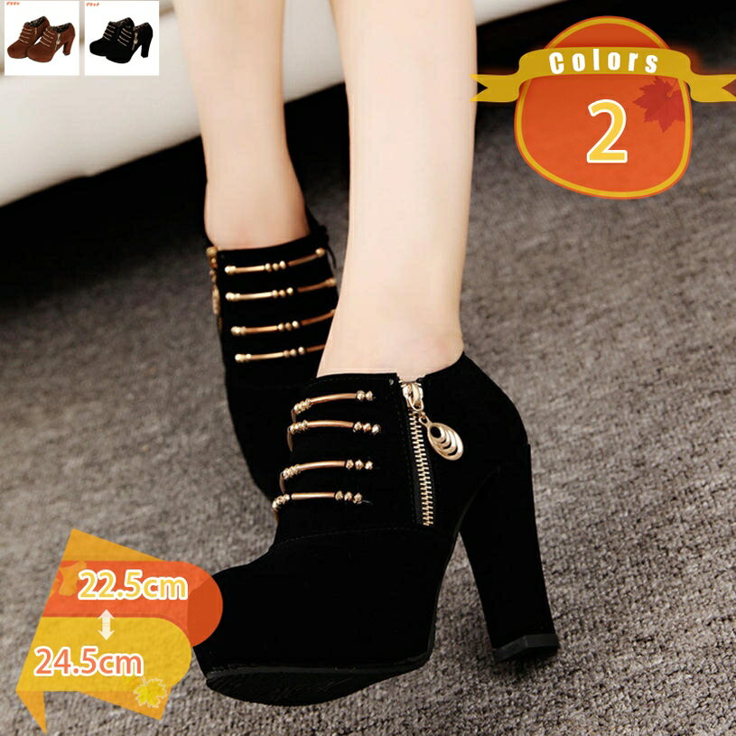 500円OFFクーポン ブーティ ショートブーツ 黒 ヒール11cm 厚底 ハイヒール アンクルブー・・・