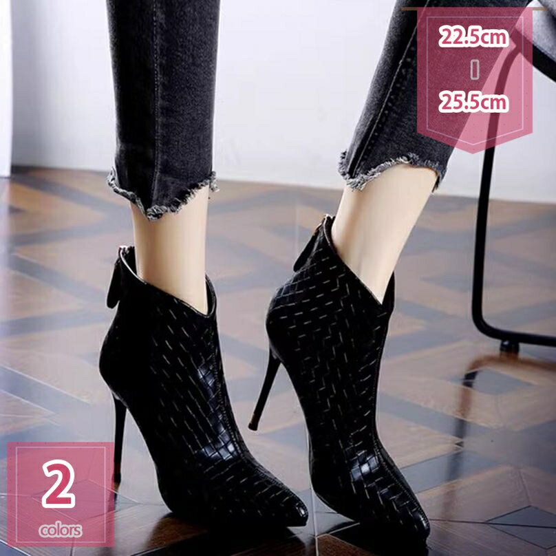 ショートブーツ ヒール ブーツ ブーティ ピンヒール レディース ショート ヒールブーツ ポインテッ・・・