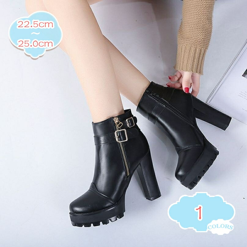 777円OFFクーポン 厚底 ショートブーツ 太ヒール 小さいサイズ レディース ラウンドトゥ ハイ・・・
