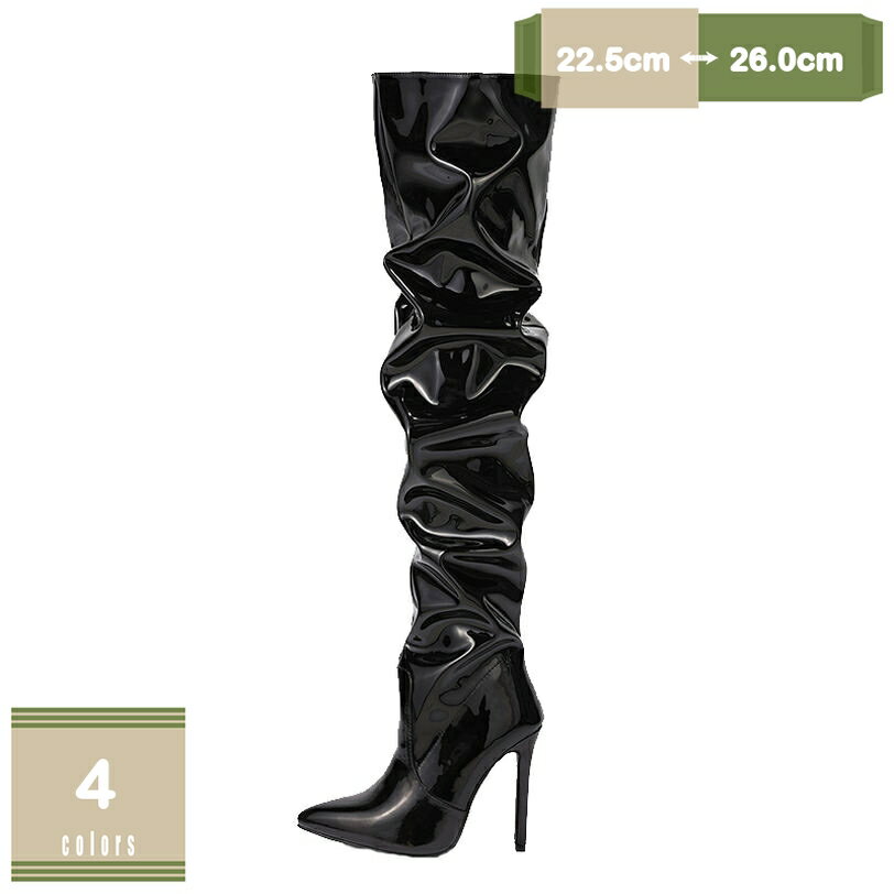 777円OFFクーポン ロングブーツ レディース ニーハイブーツ ハイヒール 11cm くしゅくしゅ・・・