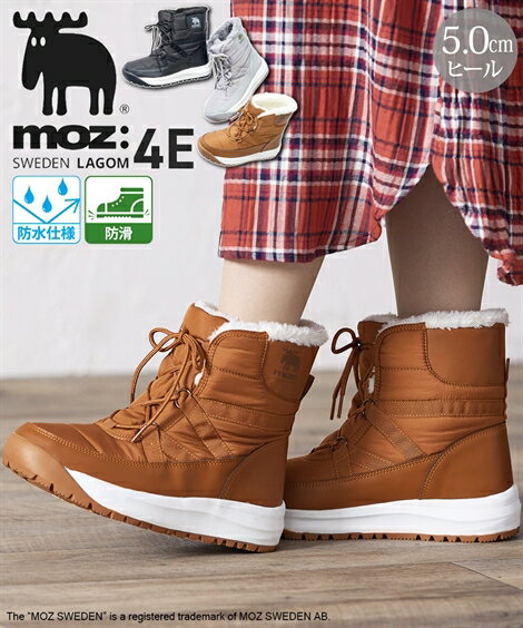 大きいサイズ レディース ゆったり幅広 moz モズ 防水防滑 レース アップ ブーツ ワイズ4E ・・・