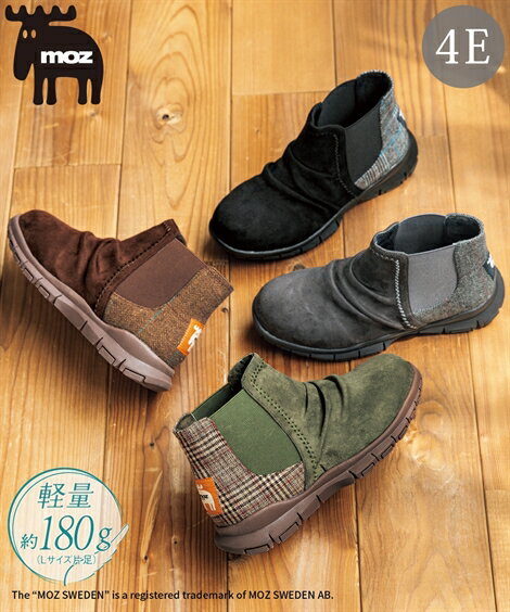 ショート ブーツ レディース 大きいサイズ ゆったり幅広 moz モズ 軽量サイドゴア ワイズ4E ・・・