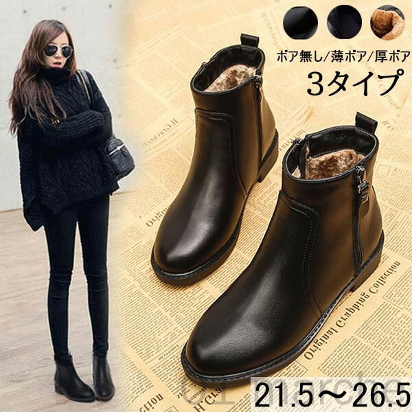 当店人気再入荷 ローヒール ショートブーツ レディース 大きいサイズ サイドジップ ペタンコ 歩きや・・・
