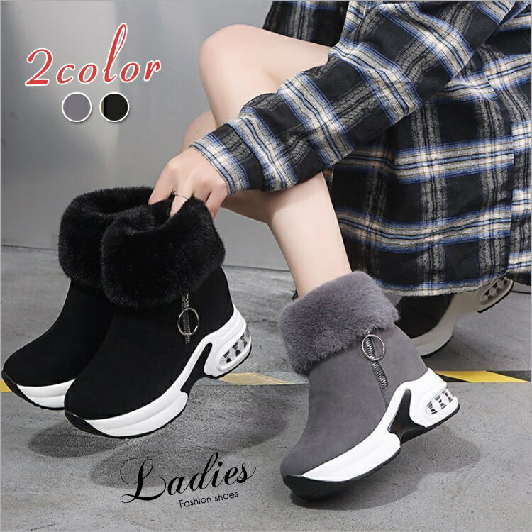 レディース ブーツショート ムートンブーツ スノーブーツ スエード ボアライニング 厚底 ヒールアッ・・・