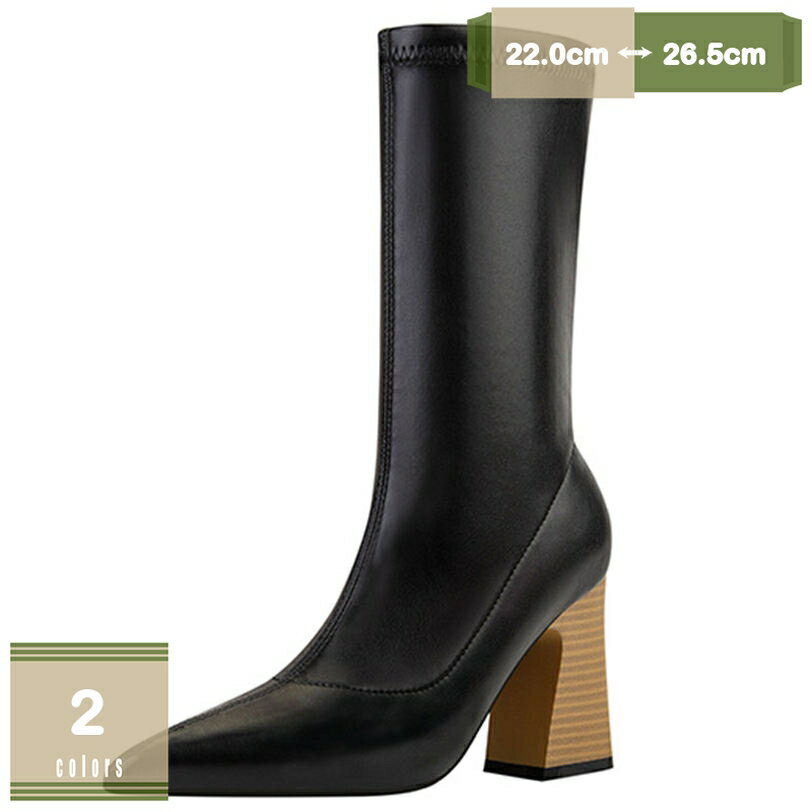 777円OFFクーポン ショートブーツ チャンキーヒール ストレッチ 太ヒール レディース ミドル丈・・・